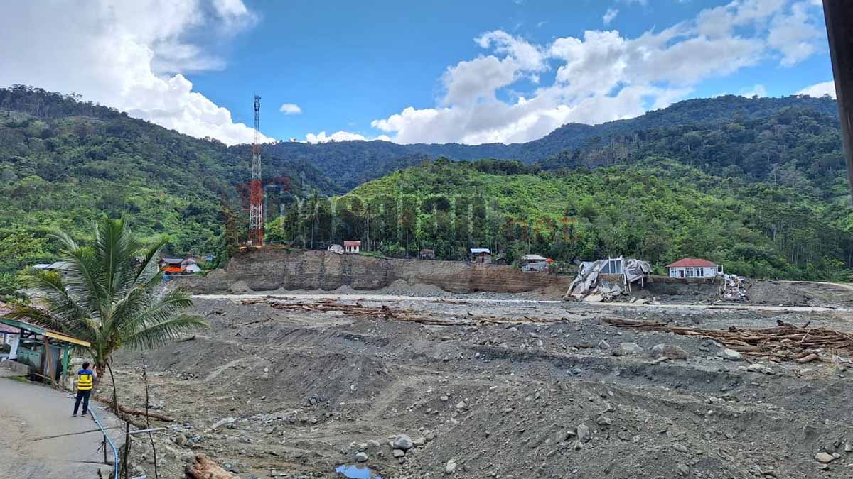 Di tepi aliran yang rusak, anak-anak berdiri memandang sisa-sisa bencana. Tempat mereka biasa bermain kini berubah menjadi lubang-lubang air berlumpur, dikelilingi tanah yang terkelupas. Tak ada lagi batas jelas antara sungai, kebun, dan halaman rumah, semuanya larut dalam jejak arus deras yang datang tiba-tiba.