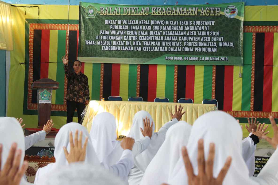 Lebih lanjut Mahdi Amin mengatakan, narasumber pada diklat tersebut berasal dari Pejabat Struktural BDK dan Pejabat Struktural dan Fungsional Kantor Kementerian Agama Kabupaten Aceh Barat. “Selama diklat berlangsung, peserta diklat akan terus dievaluasi,” ujarnya.